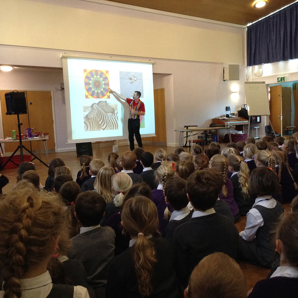 A unique and entertaining way of embedding important mathematical ideas, with some wonderfully visual spectacle along the way! Each show fully engaged and delighted the audience.S. Bamford, St Jhn's Primary School. Midsomer Norton